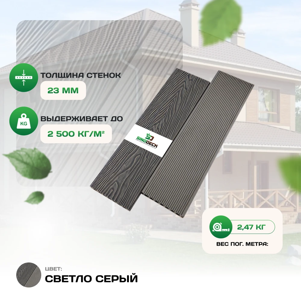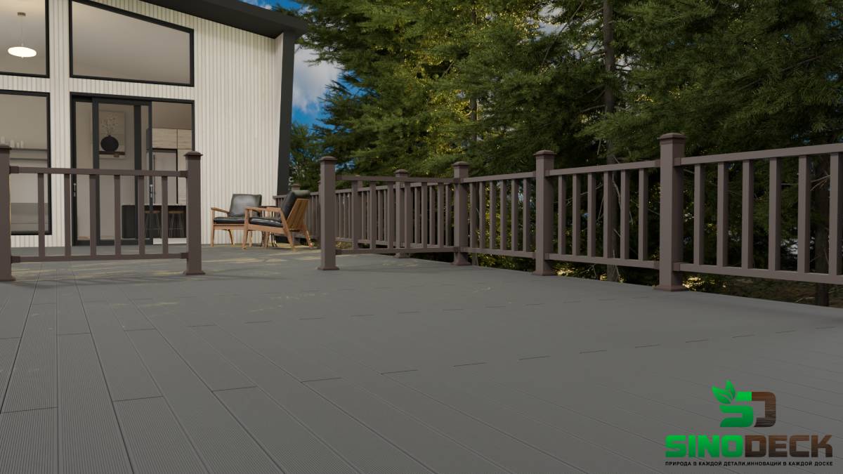 Её можно мыть обычными бытовыми (некислотными) средствами или с использованием воды под напором. В отличие от деревянных покрытий, декинг не требует дополнительной обработки защитными составами.